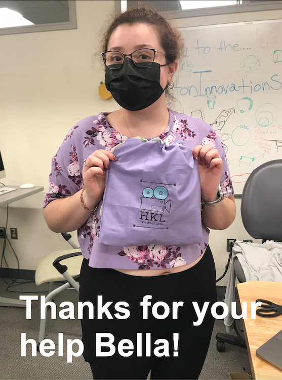 As someone who has never successfully used a sewing machine, this week was very difficult. My lines were super crooked and jagged, and I asked the Fab Lab staff a lot of questions about sewing basics. The tutorial also was very hard to follow, and even with two sets of eyes and following it to a tee, for some reason my string slots were on the inside of the bag. I have gone back through multiple times and can't seem to figure out where I went wrong! Regardless of the slight discrepencies between my bag and the tutorial, the finished result was super cute, and the logo was so cool!