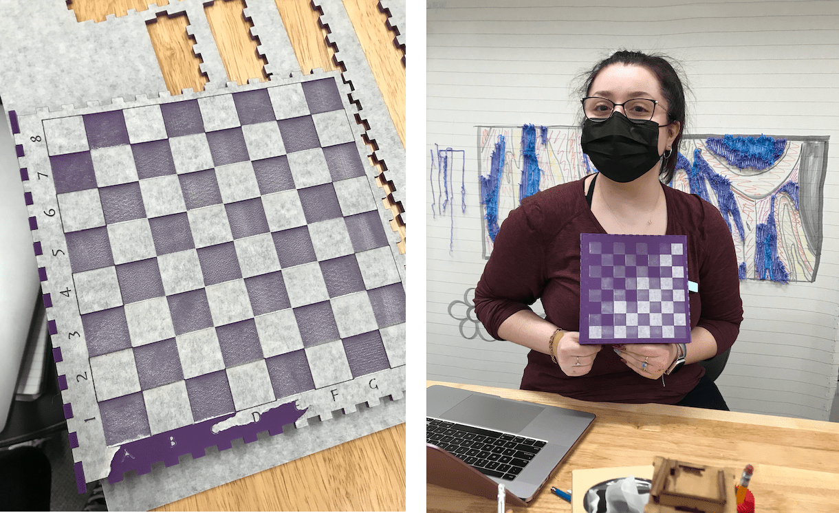 The Glowforge was going to take over an hour to engrave the checkerboard, so for the proto-type I opted out of this - and will discuss with Madison if I should plan to paint the acrylic version, as