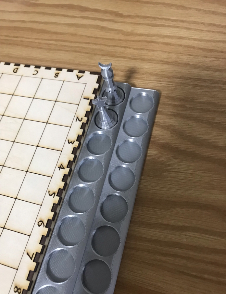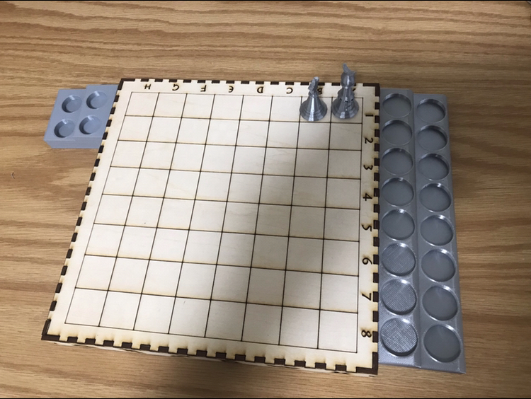 I plan to create a custom chess board, with a laser cut board, an attached 3D printed piece holder, and 3D printed chess pieces.