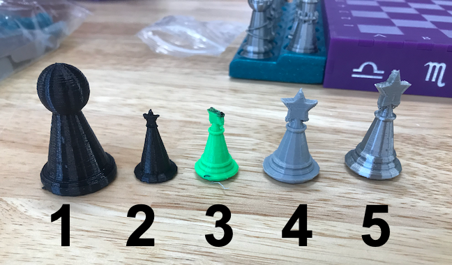 Here are the five iterations of the pawn, and a look at all the pieces!