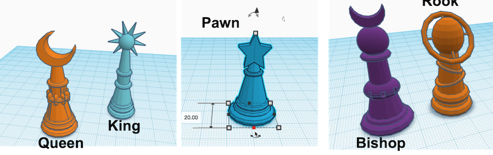 I completed all of the designs for my pieces, and changed the design of the rook.